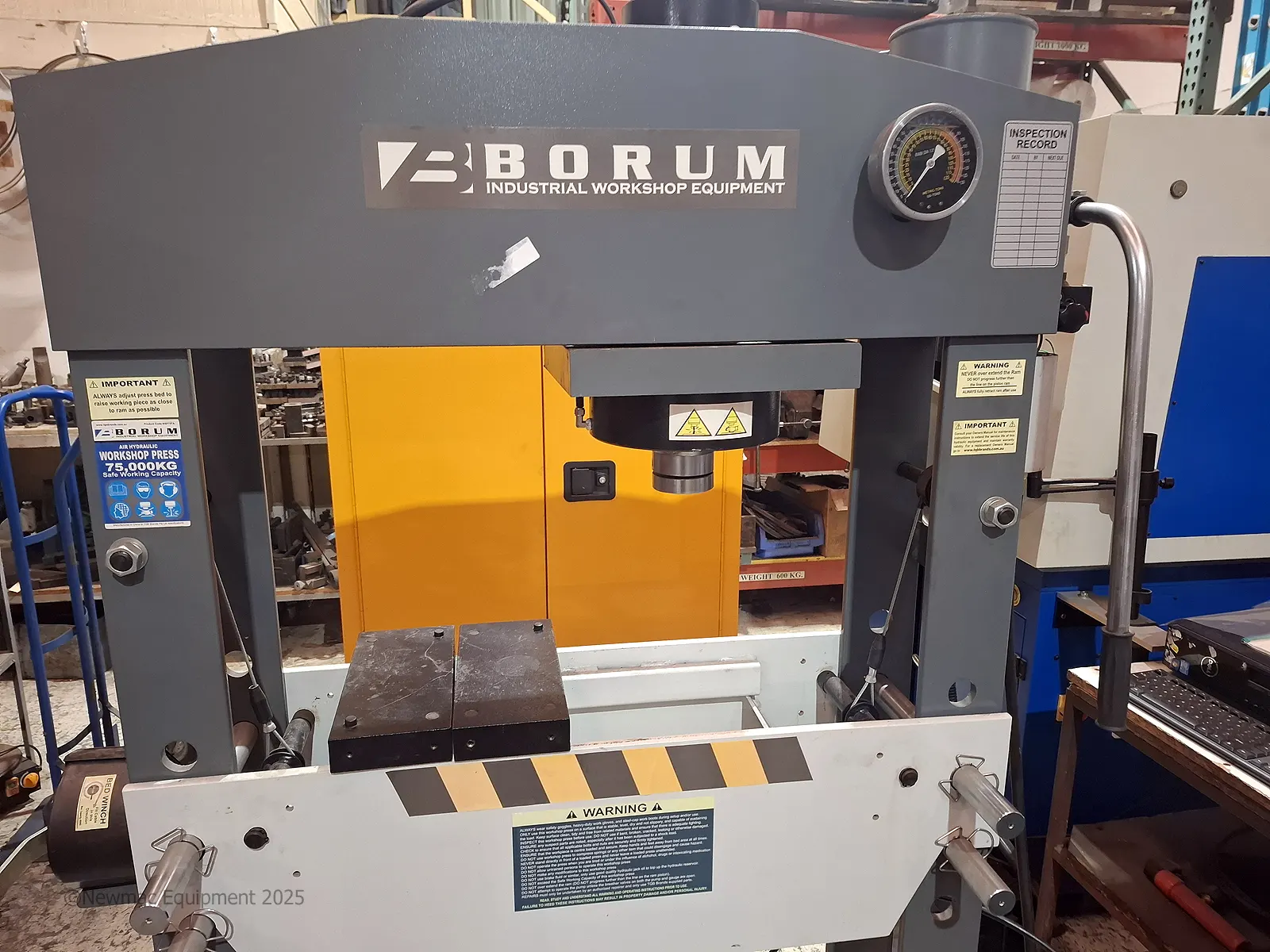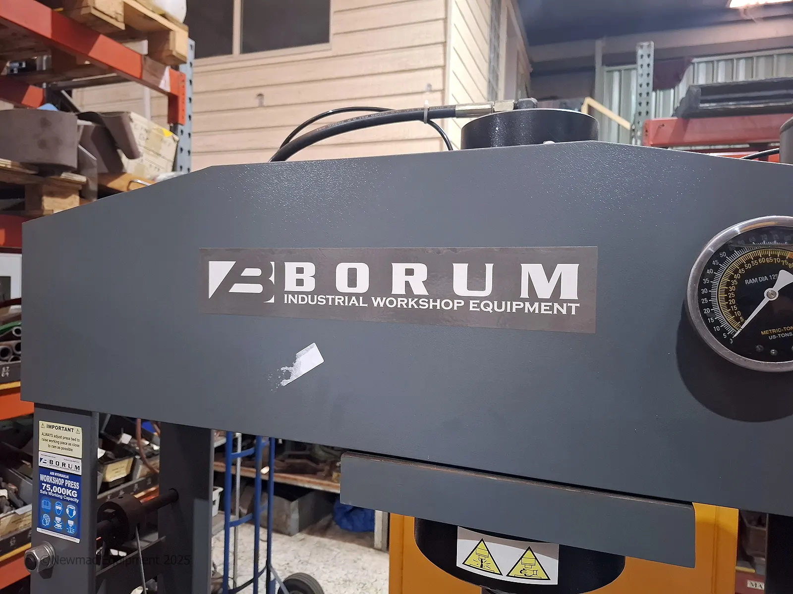 Borum BSP75TA Air Hydraulic Workshop Press for sale, rated at 75 tonne (75,000 kg)