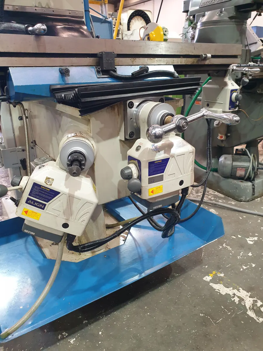 - Includes $2300 for parts + fitting for extras included with this machine, in addition to the standard X axis Align power feed, power feeds have been fitted to the Y & Z axis, plus a Power Draw BarĀ