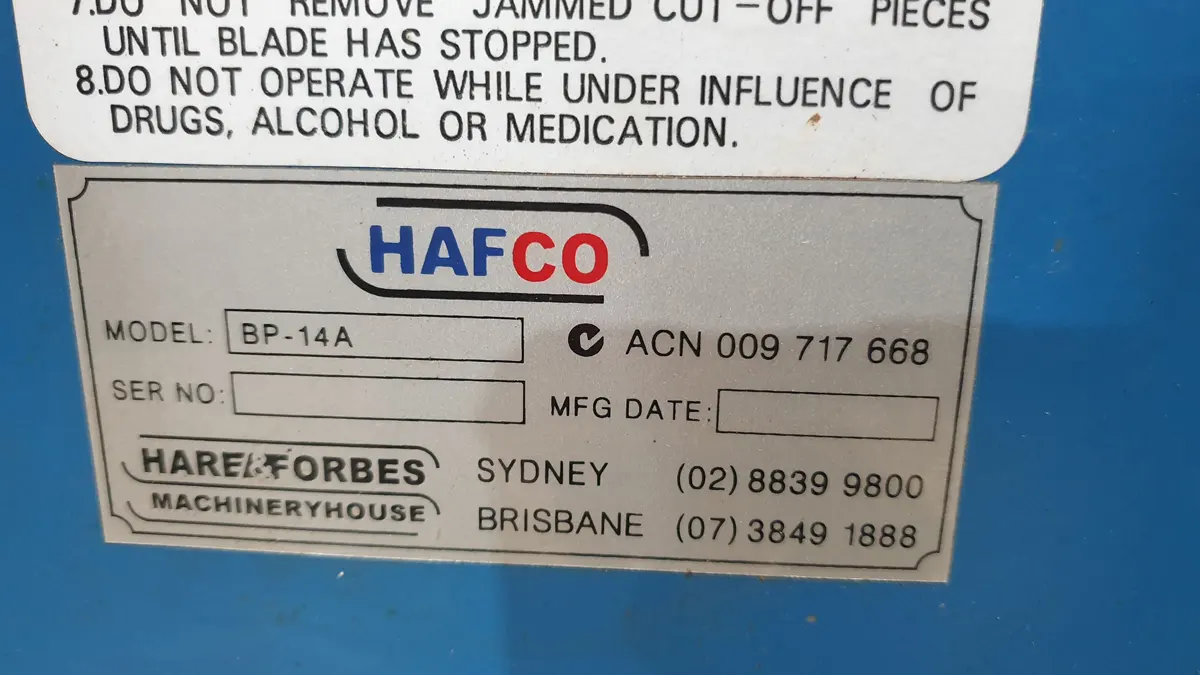 We have a Hafco Woodmaster BP-14A Vertical Bandsaw for sale.