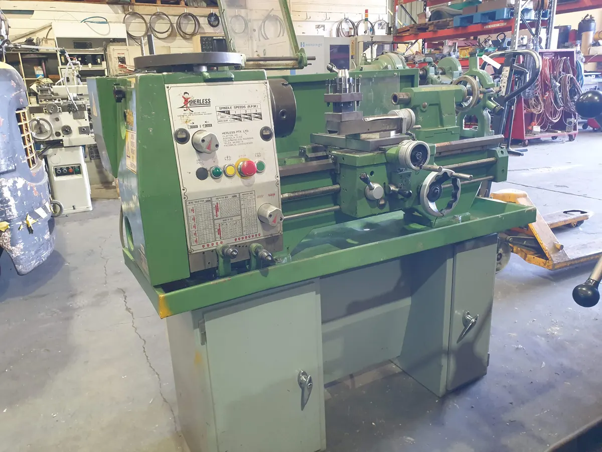 Herless was an Australian importer and supplier of Taiwanese-built workshop machinery from the 1970s through to the 2000s. The 11BU is a compact yet heavy-duty precision bench lathe commonly used in schools, toolrooms, and small maintenance workshops. Known for their robust construction and smooth operation, these machines feature dual metric and imperial dials, making them versatile for a wide range of precision turning applications.