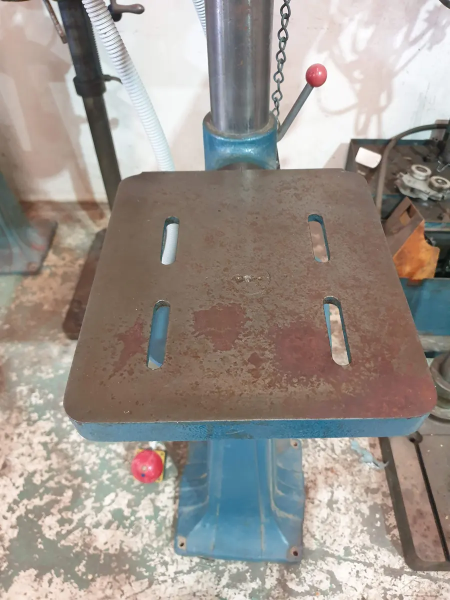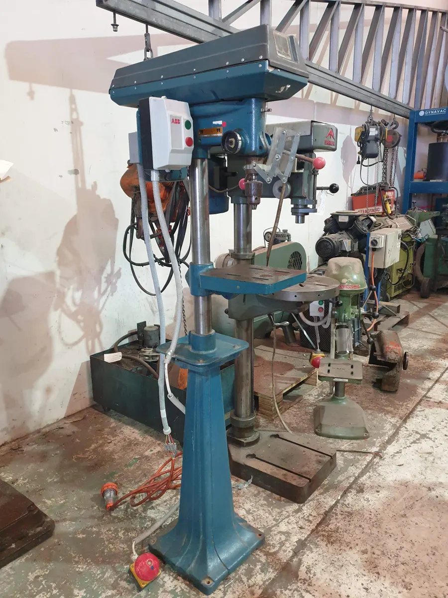 This machine is a solid medium-duty pedestal drill, suitable for accurate drilling operations in steel and other materials.