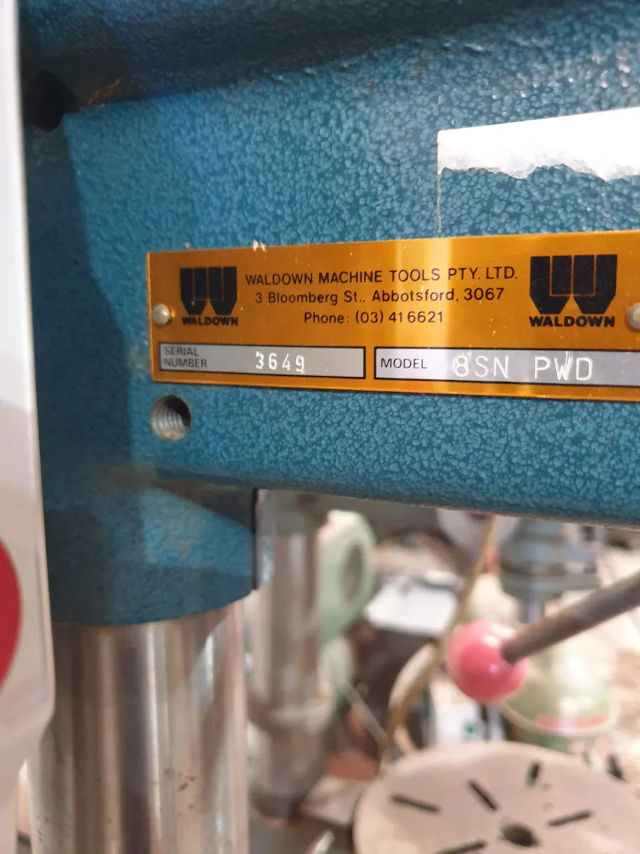 Waldown 8SN PWD pedestal drilling machine available in excellent working order. This is an ex-school unit and has been well looked after. Waldown drills are Australian-made and well regarded for their robust construction, reliability, and long service life, making them a popular choice for workshops, maintenance departments, and general engineering use.